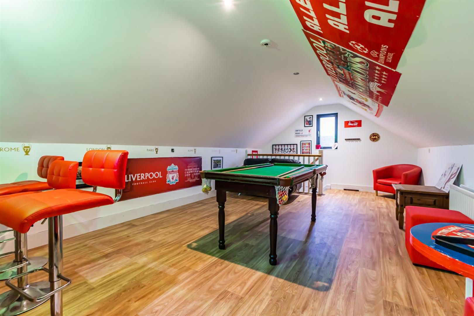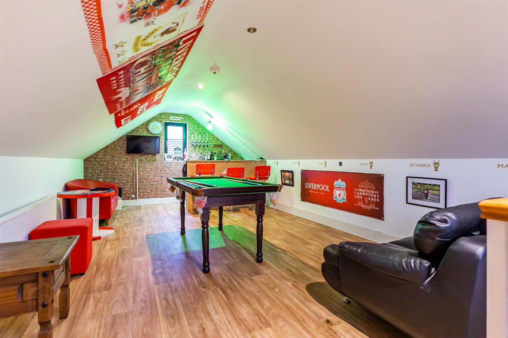 The property further benefits from a garage and a separate annex, currently fitted out as a games room and bar area, offering fantastic flexibility for entertaining, hobbies, or potential home business use.