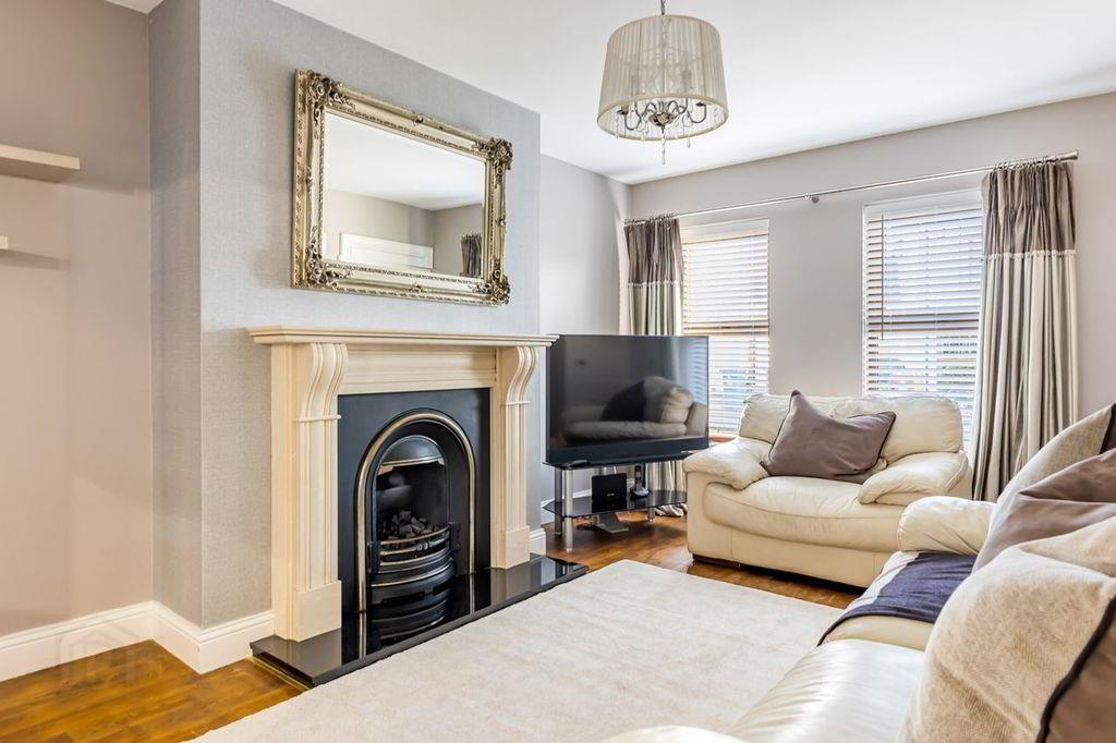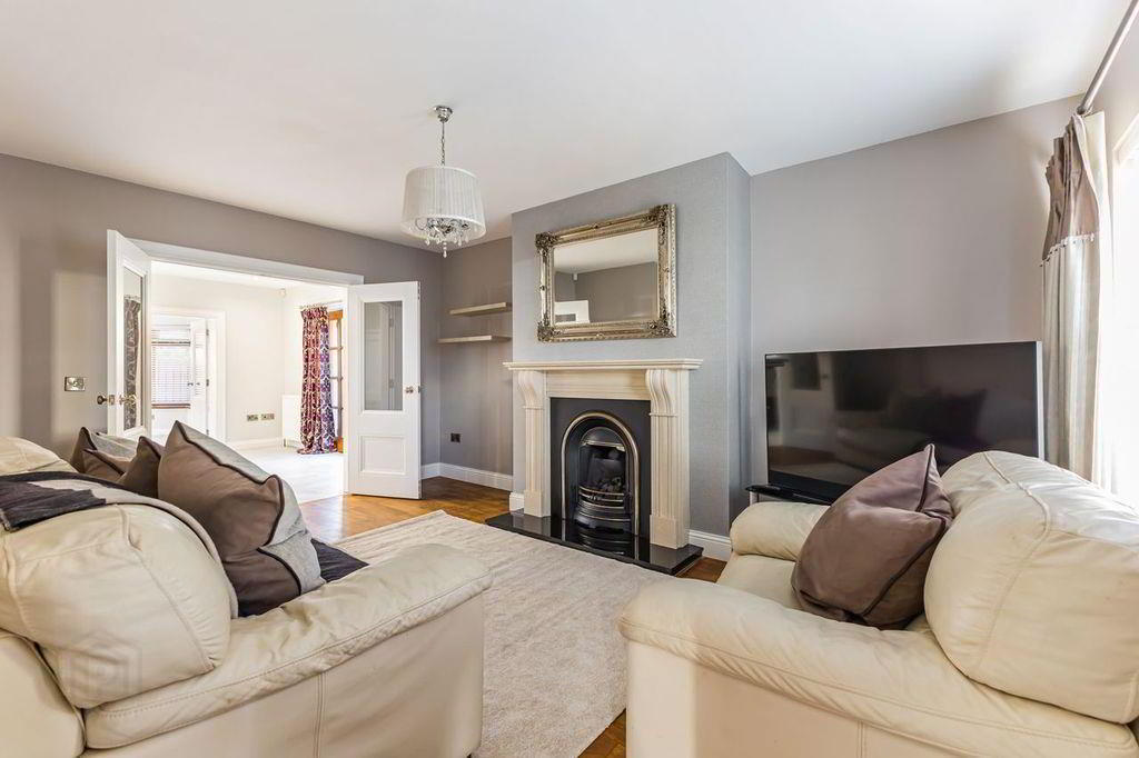 - Accessed from reception hall and glazed double doors into kitchen area. Double windows to front. Cream marble fireplace with black granite hearth and gas fire. Textured wallpaper feature to chimney brace. Wooden floor.