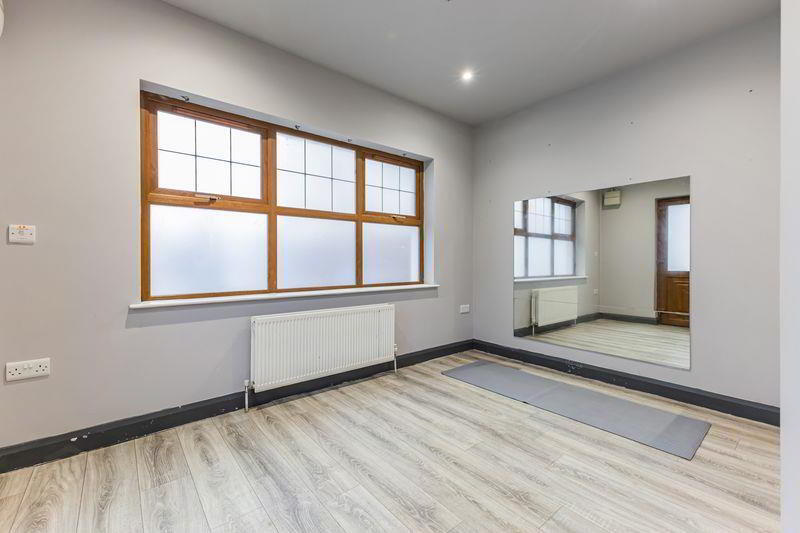 - Bright room with double windows to the front and single window to the side. Wood effect floor, pendant and wall lighting, double radiator and feature wallpaper. TV mount on chimney brace.