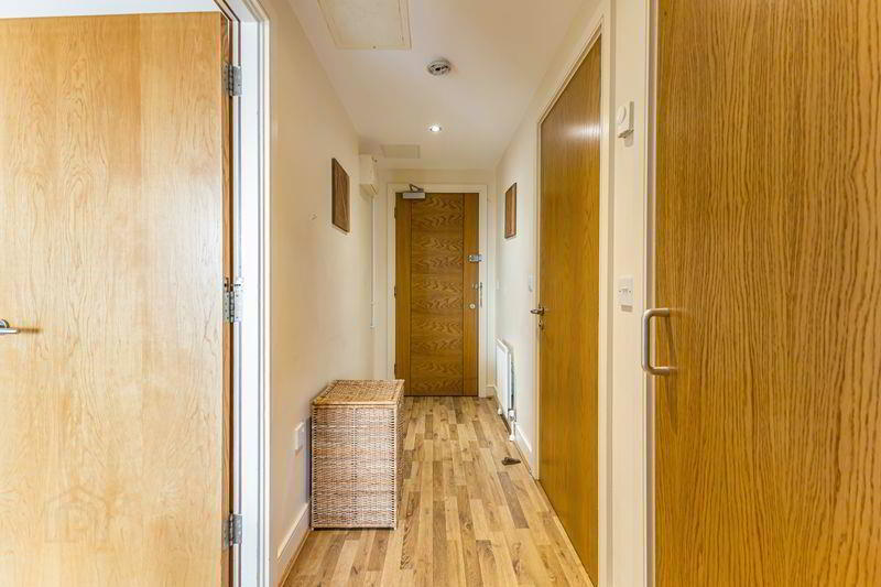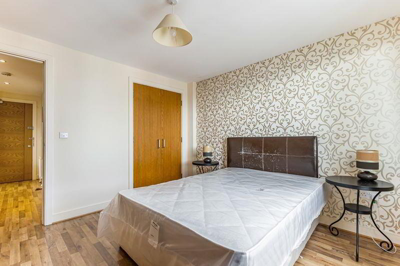 The property features a spacious double bedroom with ample storage, a contemporary fitted kitchen with integrated appliances, a bright and airy living room with access to a private balcony and a modern bathroom with shower over full-sized bathtub. Additional benefits include one secure underground parking space and a secure door entry system into the building. Service charge approximately £781 annually plus £160 reserve fund