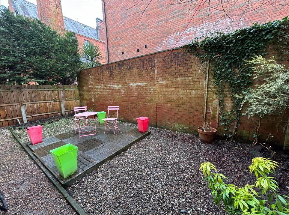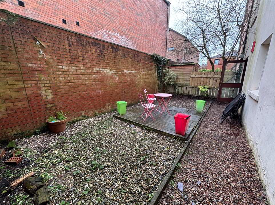 To the rear, a private garden enclosed by a high wall creates an ideal spot for entertaining guests or enjoying a quiet escape—perfect for social gatherings or gardening enthusiasts alike.