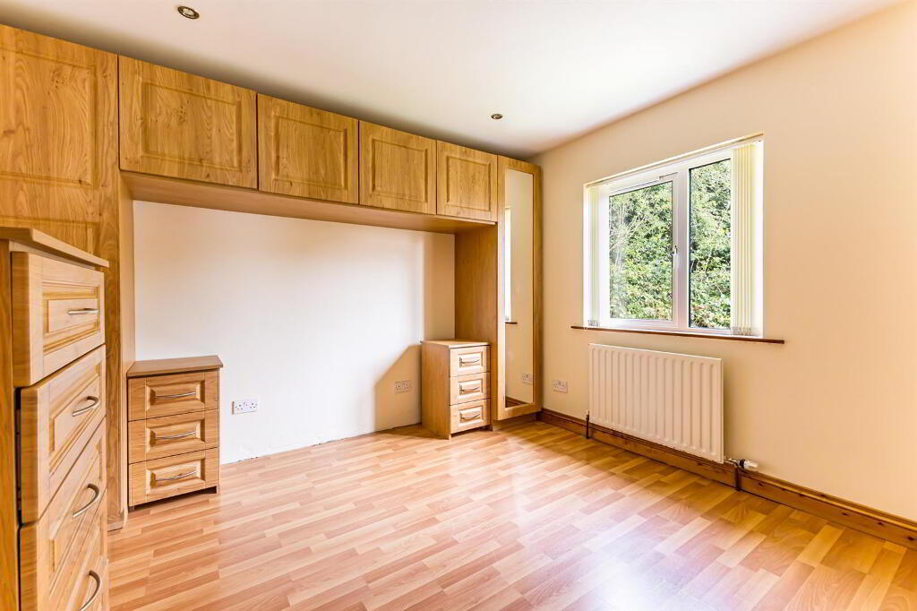 Front facing double bedroom with wood laminate flooring. Single radiator.