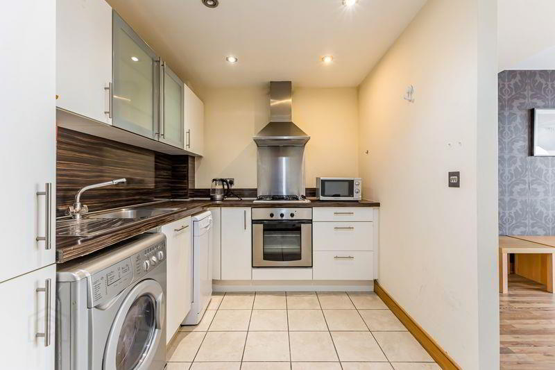 The property features a spacious double bedroom with ample storage, a contemporary fitted kitchen with integrated appliances, a bright and airy living room with access to a private balcony and a modern bathroom with shower over full-sized bathtub. Additional benefits include one secure underground parking space and a secure door entry system into the building. Service charge approximately £781 annually plus £160 reserve fund