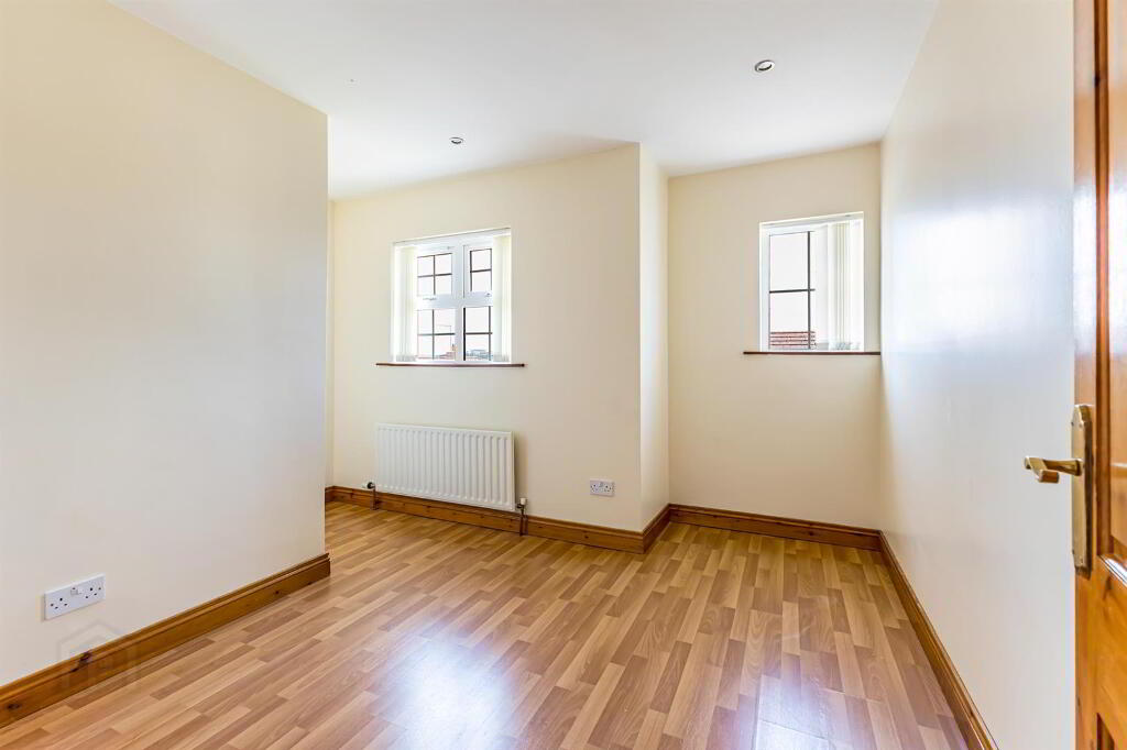 Front facing double bedroom with wood laminate flooring. Single radiator.