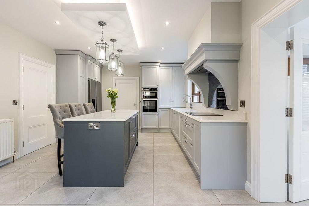 5 Oakvale Manor offers an exceptional opportunity to purchase a beautifully finished home in one of Magherafelt’s most convenient locations. Designed with a focus on modern living and premium specification, this stunning property showcases a host of standout features that elevate it far above the ordinary. The spacious kitchen is a true centrepiece, complete with sleek quartz worktops featuring refined bevelled edging, a smoked glass splashback set within the overmantle, Quooker boiling water tap, and a striking bulkhead above the island fitted with pendant lighting. A practical utility room with stacked washing machine and tumble dryer adds everyday convenience. The upstairs landing is bright and inviting, enhanced by a Juliet balcony that adds an elegant architectural touch. The luxurious master suite includes its own dressing room and ensuite, while the main bathroom offers a spa-like feel with its freestanding bath. Adding even more versatility, the garage has been thoughtfully converted to include a shower room, making it ideal as a home gym, office, guest space, or studio to suit your lifestyle. The property also benefits from a modern smart home heating system, allowing temperatures to be controlled remotely via smartphone for optimum comfort and efficiency. Every finish throughout the home has been chosen with care, creating a blend of style, comfort, and functionality. Situated just moments from Magherafelt town centre and within immediate reach of the Magherafelt bypass, the property offers effortless access for commuters while keeping all local amenities close at hand. 5 Oakvale Manor is a truly exceptional home - crafted with quality, designed for modern living, and positioned perfectly for convenience.
