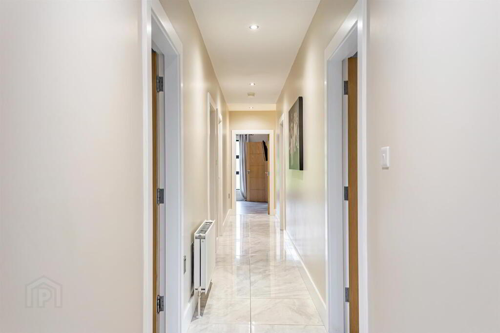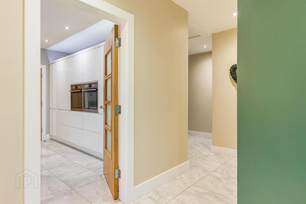 Bright, spacious hall with glazed door, high gloss tiled floor, spotlighting and double radiator. Beam vacuum system throughout the ground floor and garage.