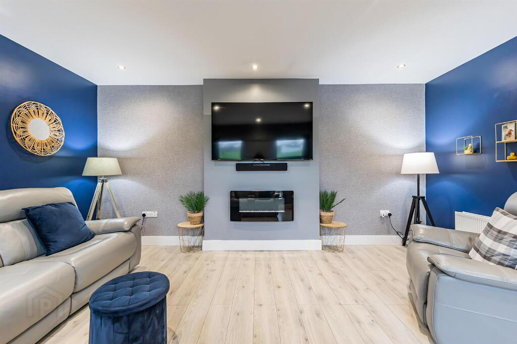 Bright room with 3 windows, 2 to front of the property, 1 to the side. Wood effect tiled floor with spotlighting, electric fire, wall mount for TV and double radiator.