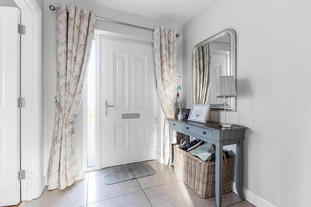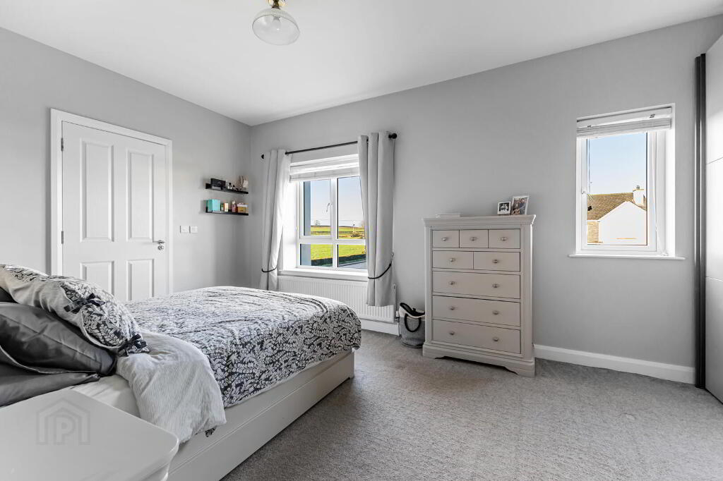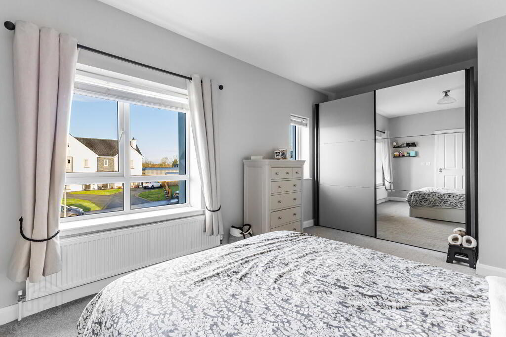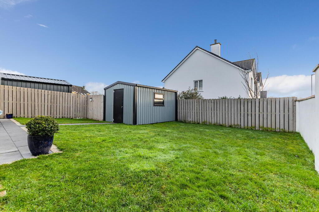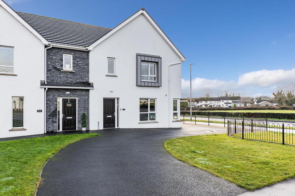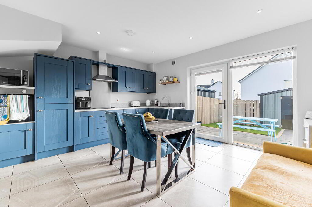 1 Lough Drive, Ballyronan, Magherafelt is a modern and exceptionally well-presented three-bedroom semi-detached home, constructed in 2021 and finished to a high standard throughout, offering stylish and comfortable family accommodation. The property occupies a desirable position within easy walking distance of the Ballyronan Marina and local amenities, while also benefiting from convenient access to Magherafelt and the nearby Magherafelt Bypass, appealing to those who commute. Internally, the home provides well-proportioned accommodation including a main family bathroom, a downstairs WC, and a master bedroom with en suite, complemented by oil-fired central heating, a multi-fuel stove, and a contemporary kitchen with integrated appliances. Externally, the property features a tarred driveway with private parking and a spacious enclosed rear garden incorporating a patio area with pathway leading to a substantial 13ft x 10ft shed, along with a discreetly fenced oil tank. Enhanced further by PVC double glazed windows, a security alarm system and loft ladder, this is a thoughtfully designed and well-located home offering quality modern living in a sought-after marina setting.