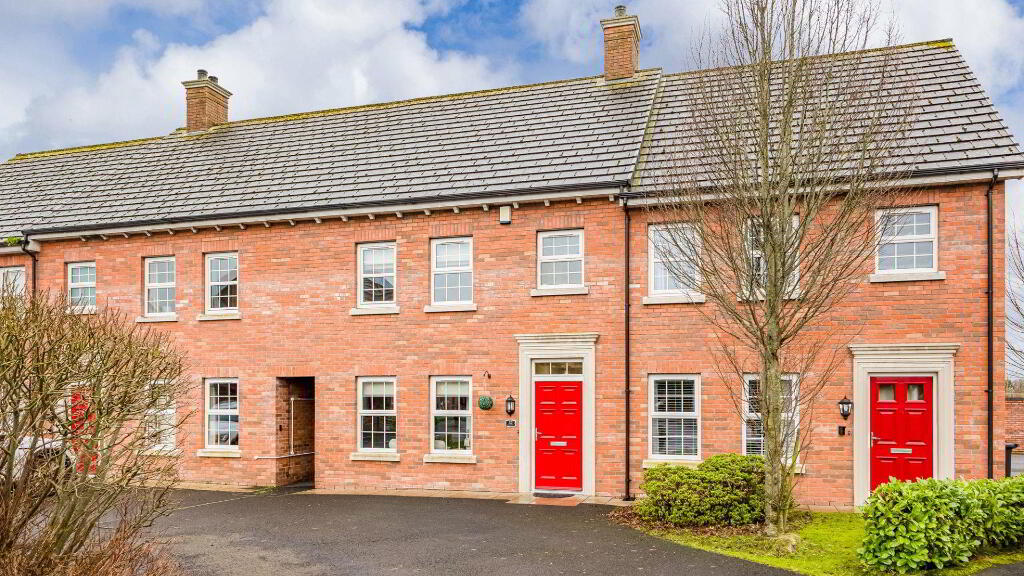 32 Red Row, Toomebridge presents a stylish three-bedroom red-brick townhouse showcasing classic Georgian-style detailing while benefiting from a modern circa-2010 construction. The interior includes a generous master bedroom with ensuite facilities, a convenient downstairs WC, and a bright kitchen/dining area that opens via French doors onto a fully enclosed rear garden and patio, complemented by a garden shed and attractive buxus hedging. Located within the village, this home offers straightforward access to the M2 motorway and is well positioned for Ballymena and Magherafelt, making it a practical choice for buyers seeking comfort, convenience, and strong transport links.