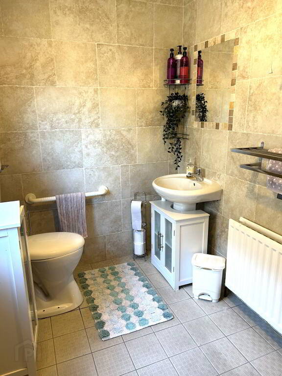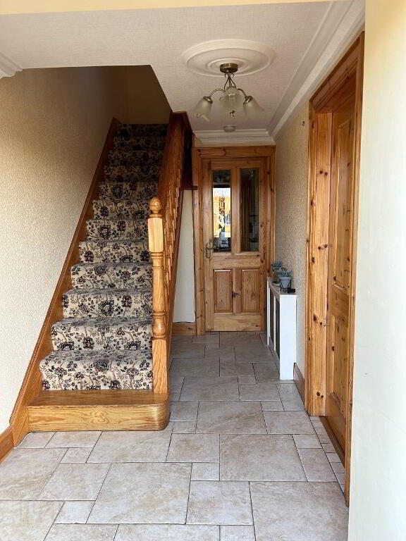 Externally there is an enclosed rear yard and garden shed and a well-kept paved with a surrounding wall area to the front. The property benefits from oil fired central heating, double glazed windows and owing to its close proximity to the Lough Shore, enjoys stunning views all year round! Ample parking facilities and a community play area can also be availed of.