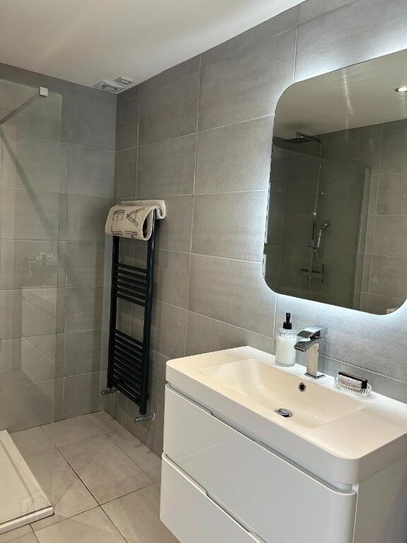 The first floor comprises of two double bedrooms and an exceptional bathroom with a large walk-in shower.