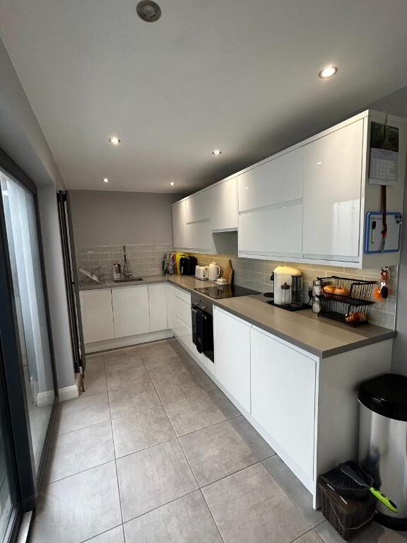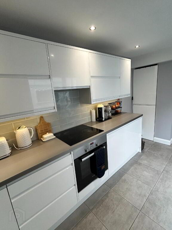 The open planned living / dining area is well proportioned and designed in order to make the most of space and light. There is in-built storage and the wall mounted TV has surround lighting for added ambience. The contemporary kitchen is sleek and stylish and equipped with modern appliances including a separate utility cupboard to house a washing machine & dryer.