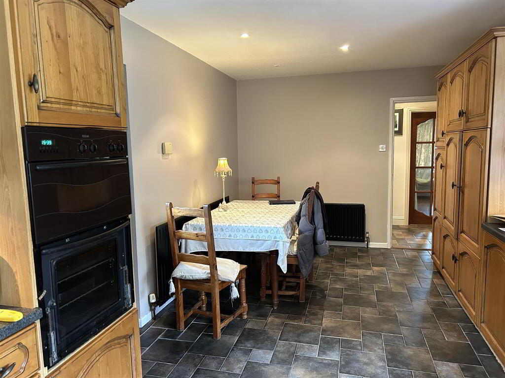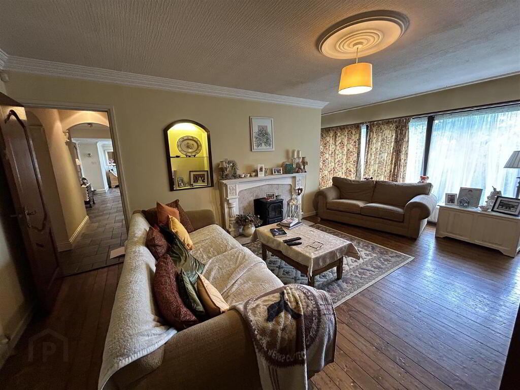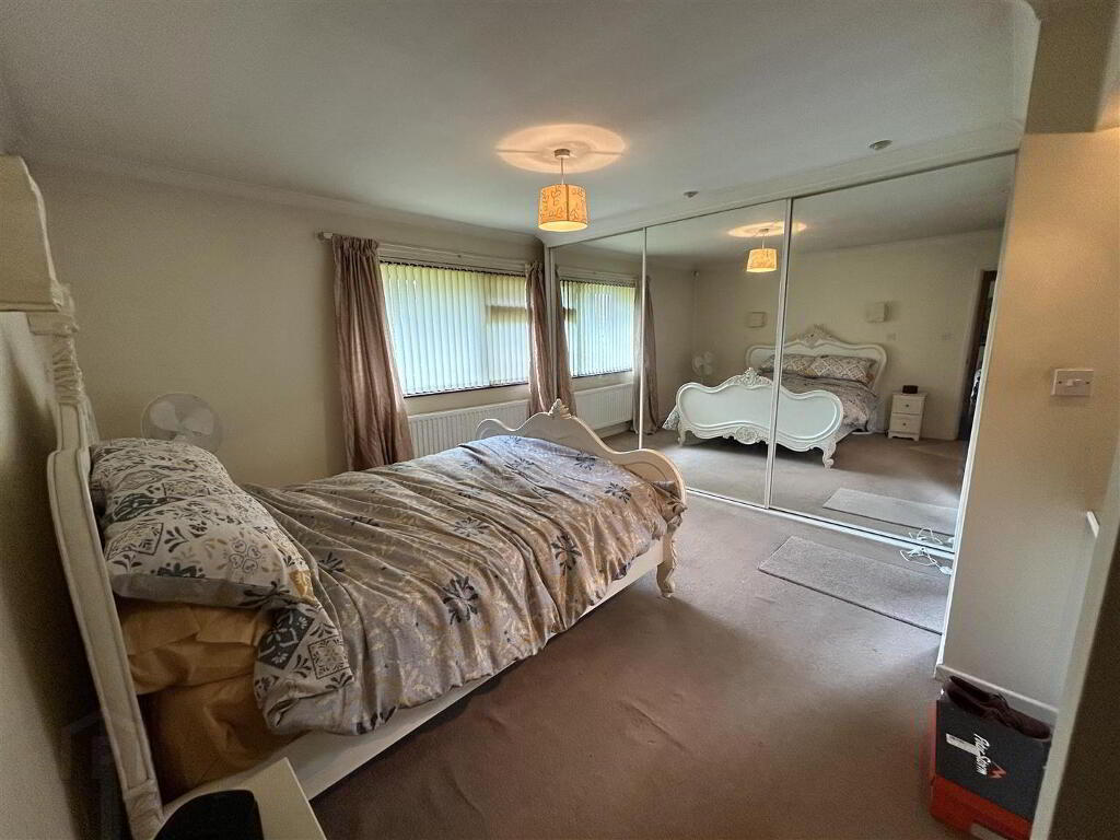 The bungalow boasts an attached double garage and a large garden both at the front and rear of the property. A designated patio area is perfect for outdoor relaxation and entertaining. The private driveway leads to a rear gravel parking area, offering ample space for multiple vehicles.