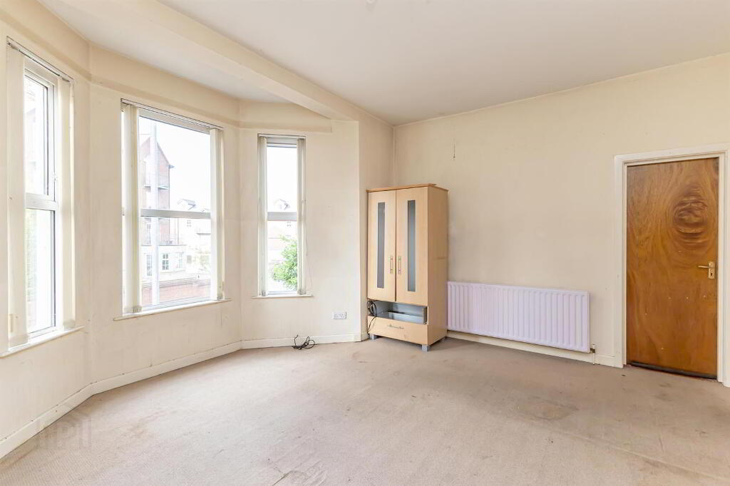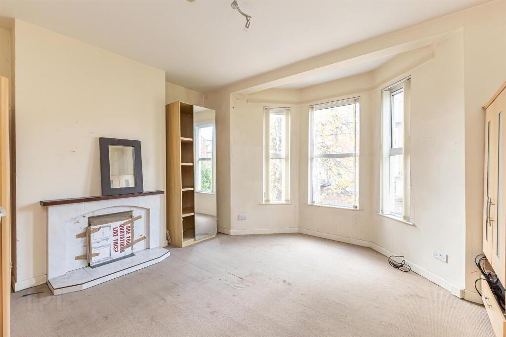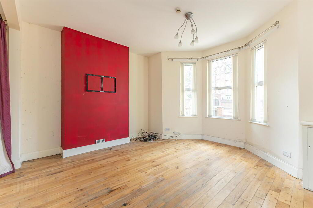 - The property boasts a spacious living room, highlighted by a bay window that floods the space with natural light.