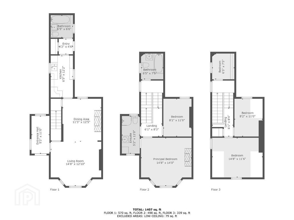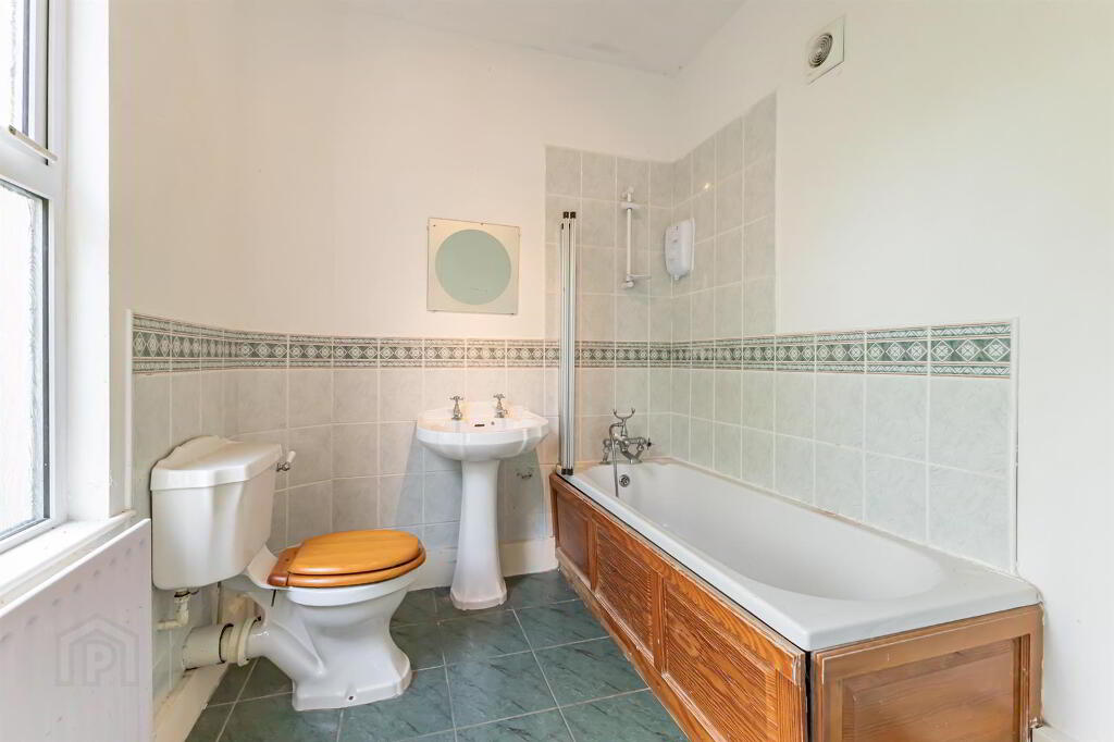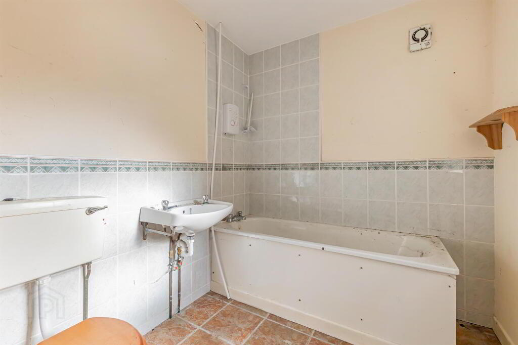 - The first floor, 3 piece bathroom suite includes a bath with an overhead shower. Tile flooring and part tiled walls.
