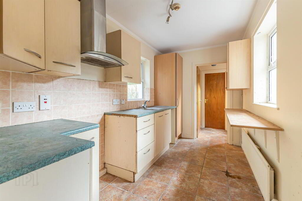 - The kitchen has a good range of high and low units with tiled floors and part tiled walls.